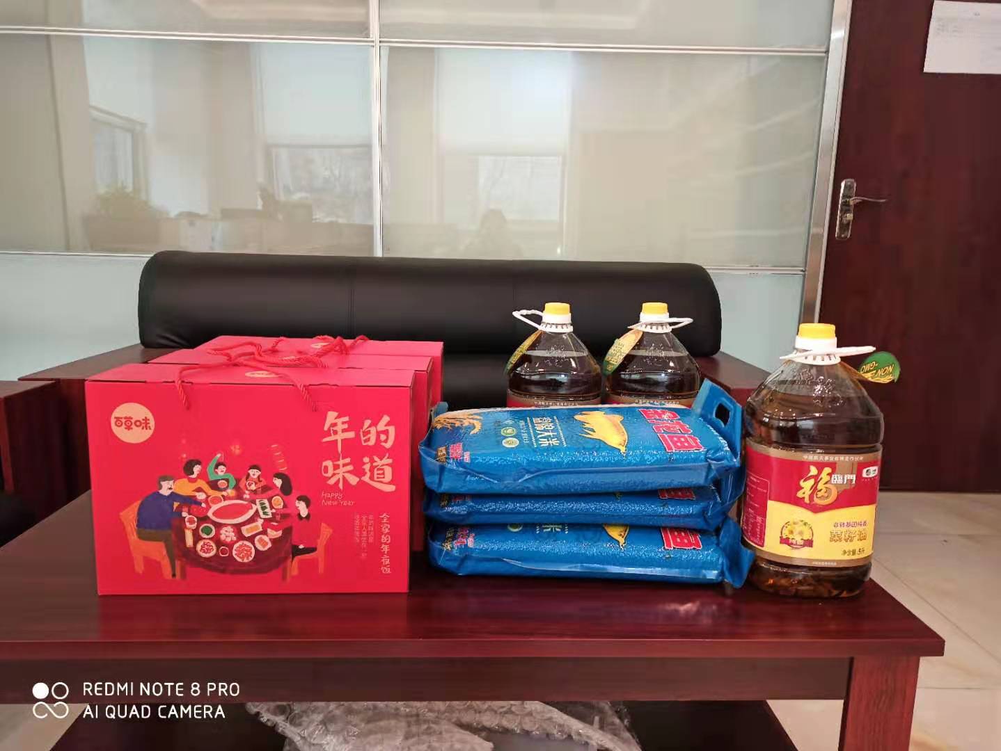 為提高公司凝聚力、向心力,讓員工把公司當(dāng)家,創(chuàng)造性地完成工作。因此公司組織多樣化的企業(yè)文化活動(dòng),提高節(jié)假日福利待遇,使員工感到溫暖與關(guān)愛、重視與欣賞,從而讓員工想要留在溫暖與奮進(jìn)的企業(yè)中。2020年大硅公司領(lǐng)導(dǎo)為公司每位員工精心準(zhǔn)備了新年禮物。送的福利有一袋米,一桶油,和一箱堅(jiān)果大禮包。
